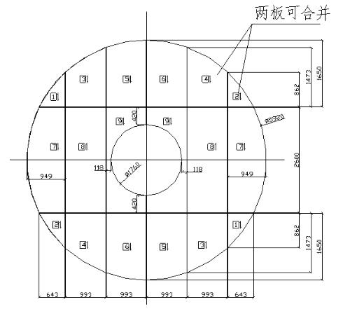 鋼格板整體鋪設(shè)時,應(yīng)以鋪設(shè)區(qū)域的某一軸線或者孔中心線為基準(zhǔn)向一側(cè)或兩側(cè)展開。當(dāng)設(shè)計(jì)區(qū)域?yàn)榫匦纹脚_時,要以某軸線為基準(zhǔn)進(jìn)行鋪設(shè)。如果平臺上有較大的開孔,也可以孔的中心為基準(zhǔn)進(jìn)行鋪設(shè)。當(dāng)區(qū)域?yàn)橐粓A形平臺時,應(yīng)以美觀省料的前提,以圓形平臺中心線為基準(zhǔn)向四周進(jìn)行鋪設(shè)。特殊情況下也可以從一邊向另一邊進(jìn)行整體鋪設(shè),最后按剩余量來決定采用接板還是窄板進(jìn)行補(bǔ)償。整個平臺的鋪設(shè)方案要符合整齊、對稱、均勻的標(biāo)準(zhǔn)。如圖所示,在實(shí)際設(shè)計(jì)過程中,應(yīng)根據(jù)圖紙中鋼梁的布置方案確定鋼格板具體的鋪設(shè)方法,同時兼顧節(jié)省原材料、減少工作量的原則。