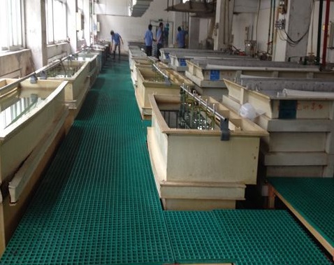 △地溝蓋板:在化工廠、冶煉廠、電廠、電鍍廠、蓄電池廠、機械廠、鋅廠等的電解車間、酸洗車間以及化學水處理車間都有大量地溝,地溝中多為腐蝕性液體,使用FRP格柵替代傳統的普通鋼材、水泥制成的地溝蓋板,可以很好的解決腐蝕問題,同時便于污水泄人水溝、便于觀察地溝內的情況。