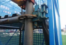 (4)每塊鋼板網的重量通過底部兩個固定件傳遞到腳手架大橫桿上,實行分級卸載,嚴禁節省固定件的數量。