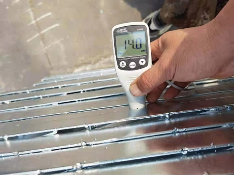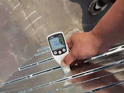 在這種背景下,有些鋼格板企業轉移成本的動力就十分充足,另辟蹊徑降低成本的欲望也就越強烈。傳統的方法是利用采購對鋼格板產品的關心力度明顯不足,客戶對鋼格板產品的知識極為醫乏,有的鋼格板公司利用采購者的上述心理和缺陷在相關環節偷工減料,以降低人工成本和材料成本。不過隨著客戶掌握的鋼格板知識越來越多,以前的辦法就行不通了,個別的鋼格板企業又在鋼格板表面處理方面動了歪主意。先看兩張鍍鋅層厚度檢測儀檢測到的圖片: