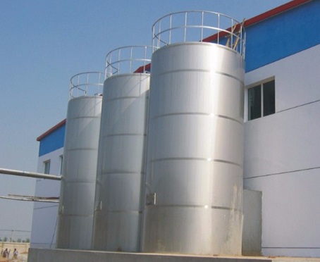 奶倉是用于室外低溫貯存鮮奶的不銹鋼容器。罐體內壁與外殼之間的絕熱結構保溫層(或加冷卻夾套)和罐內高速推進式攪拌器的作用,使進入倉內的低溫(≤5℃)鮮奶貯存24小時,溫升不超過2℃、脂肪不上浮,廣泛用于乳品廠室外貯存鮮奶。
