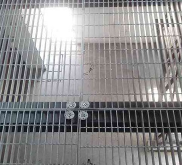 4)、繼續在每個鋼格柵板上安裝設計組數的壓緊板、射釘、連接螺釘完成一塊鋼格柵板的安裝。