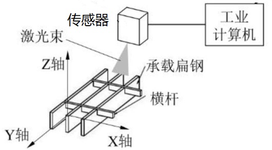 鋼格板壓焊質(zhì)量在線(xiàn)檢測(cè)方法,通過(guò)鋼格板壓焊質(zhì)量在線(xiàn)檢測(cè)系統(tǒng)進(jìn)行鋼格板表面平整度和變形量的在線(xiàn)測(cè)量,具體步驟如下: