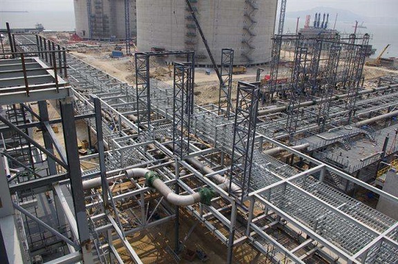 鋼格板是一種由承載扁鋼與橫桿按照一定的間距正交組合,通過焊接或者壓鎖加以固定的開場板式鋼結構。壓焊鋼格板制造流程相對簡單,生產效率極高,承載扁鋼根據用戶需要選擇,這樣就很大程度減少了鋼格板的自重,最重要的是減少了鋼格板用鋼量,降低成本。因而,在液化天然氣LNG模塊得到了廣泛的應用。LNG天然氣項目是使用鋼格板的大客戶,鋼格板覆蓋率甚至達到項目結構總重的10%以上。