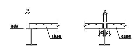 三、鋼格柵板負載扁鋼兩端在梁上的支承長度每端不小于25mm;兩塊板的安裝間隙為10mm,且兩塊板的下部必須有可靠的支承,不得出現懸空現象,見圖6;