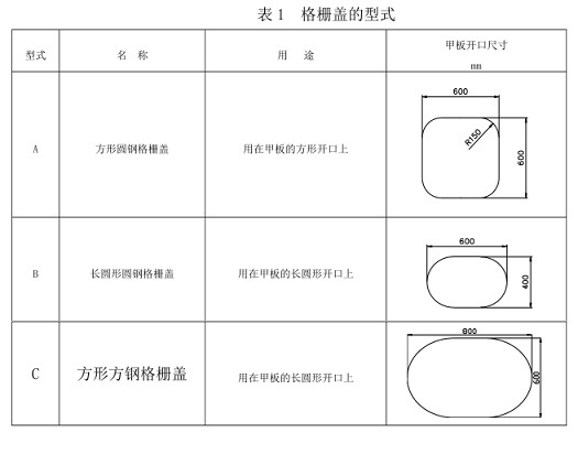 格柵蓋的型式見表1