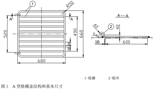 A型格柵蓋結構和基本尺寸見圖1