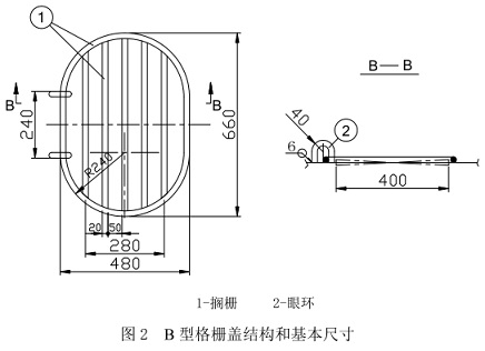 B型格柵蓋的結構和基本尺寸見圖2