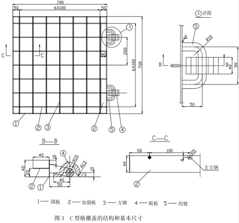C型格柵蓋的結構和基本尺寸見圖3