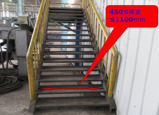 斜梯內(nèi)側(cè)凈寬度單向通行的凈寬度宜為600mm,經(jīng)常性單向通行及偶爾雙向通行凈寬度宜為800mm,經(jīng)常性雙向通行凈寬度宜為1000mm。斜梯內(nèi)側(cè)凈寬度應(yīng)不小于450mm,宜不大于1100mm。