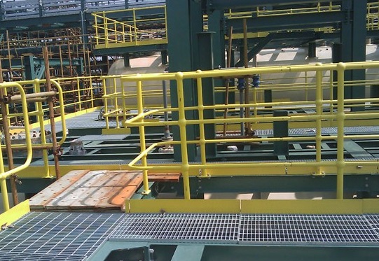 鋼格柵安裝時要按設計圖紙要求預留出設備、工藝管道、樓梯等的位置,待它們安裝、保溫、保冷等工作內容完成,才將多余(寬出來)的孔洞封閉或完善;又因設備、管道到貨時間不確定,孔洞需要做臨時安全防護措施;固定好的鋼格柵因施工需要進行小范圍的掀開,待作業完成才恢復。
