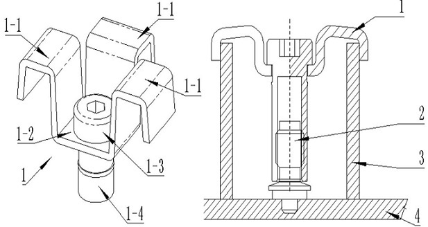 在海洋工程領域,鋼格柵板需要緊固件進行固定,現(xiàn)有的格柵板緊固件,主要是圓盤式格柵緊固件,圓盤式格柵緊固件為了更好的固定格柵板將其安裝面設計成帶有一定弧度的安裝面,在鋼格柵板上進行堆壓或者推拉重物時,容易使得安裝面的弧度變形,從而造成緊固件的安裝出現(xiàn)松脫等不良后果。